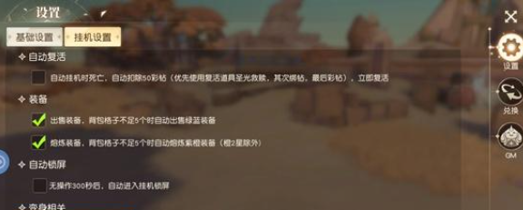 想要开启天神系统,操作是比较便捷的,只需要点击主界面右下角的天神按钮,就可以进入到其中。这里就有一个小细节需要注意,默认状态下自动战斗并不会触发天神变身。想要让挂机流程更加的高效,记得在设置界面的挂机选项中,直接选择挂机时自动变身,同时在基础设置里面的自动复活,还有装备出售都需要同步配置。例如背包格子不足5个时,就会自动的出售绿蓝装备,可以让挂机的过程更加的省心,把所有的注意力都放在战斗上。