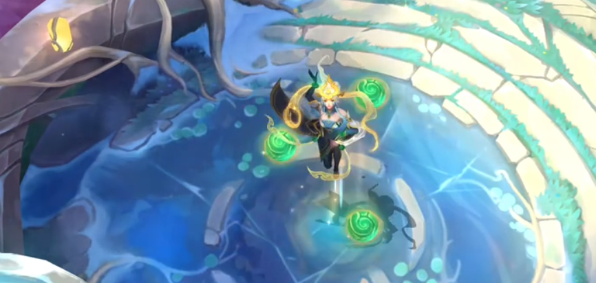 4、皮肤特色:包含专属技能特效、阵亡 / 复活演绎、独特姿态 "莲泛绿漪"、家园卫士特效等