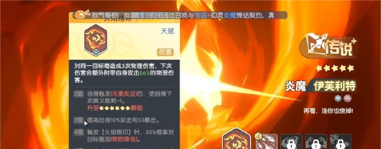 第三位推荐炎魔。该角色为物理输出天花板级传说英雄,成长曲线平滑,培养门槛相对较低。在完成中后期觉醒后,其物理伤害上限显著跃升,技能附带的穿透与持续压制效果进一步放大实战优势,资源投入产出比优异,适合追求稳定战力提升的玩家优先纳入抽取清单。