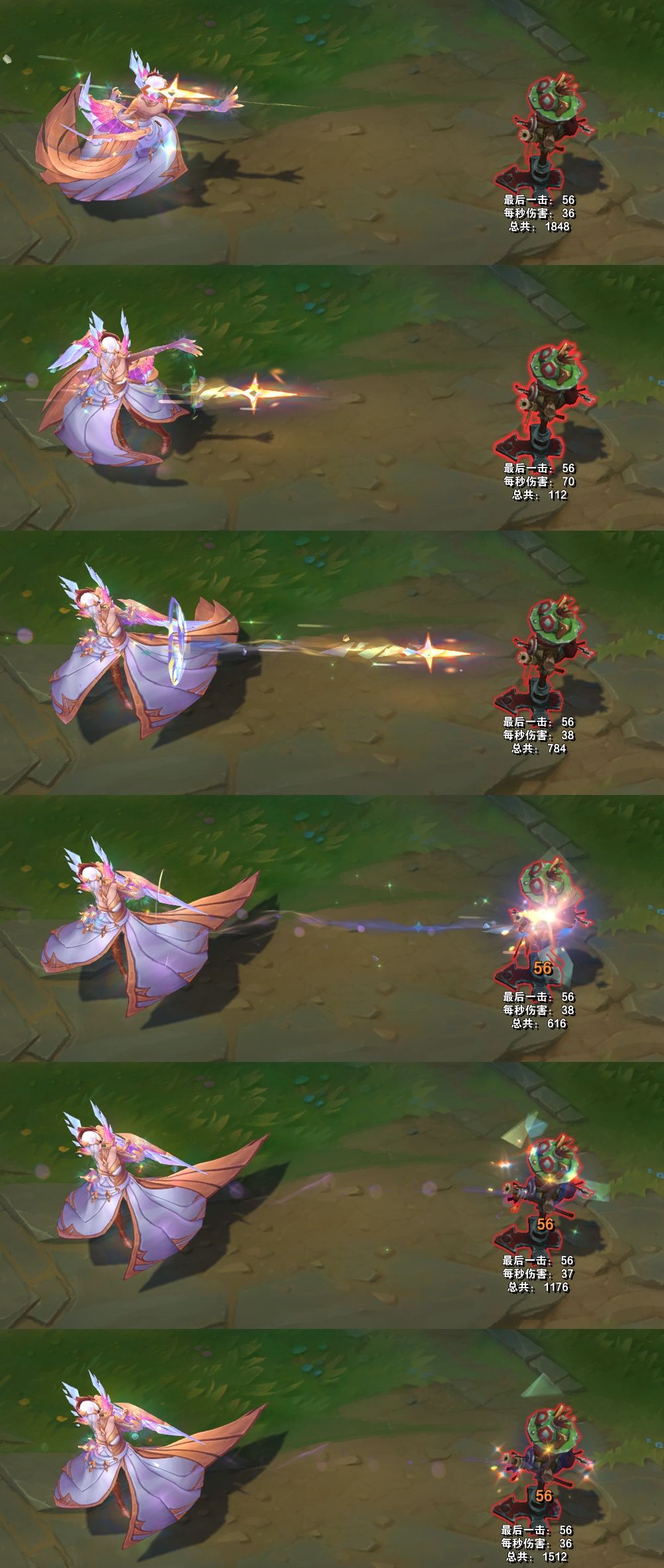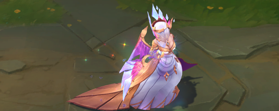 模型方面,手上不停向外散发出彩绘玻璃样子的光效,模型底部有亮光,身体周围会有闪光粒子和水晶碎块。