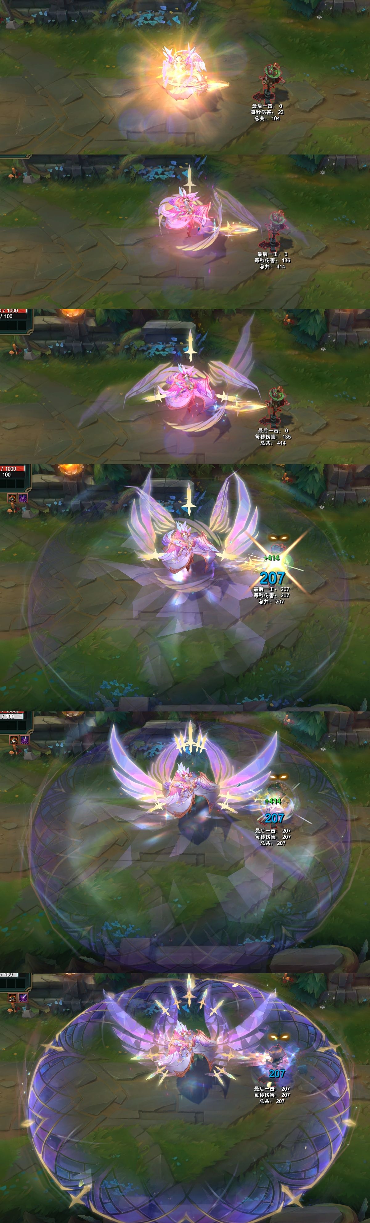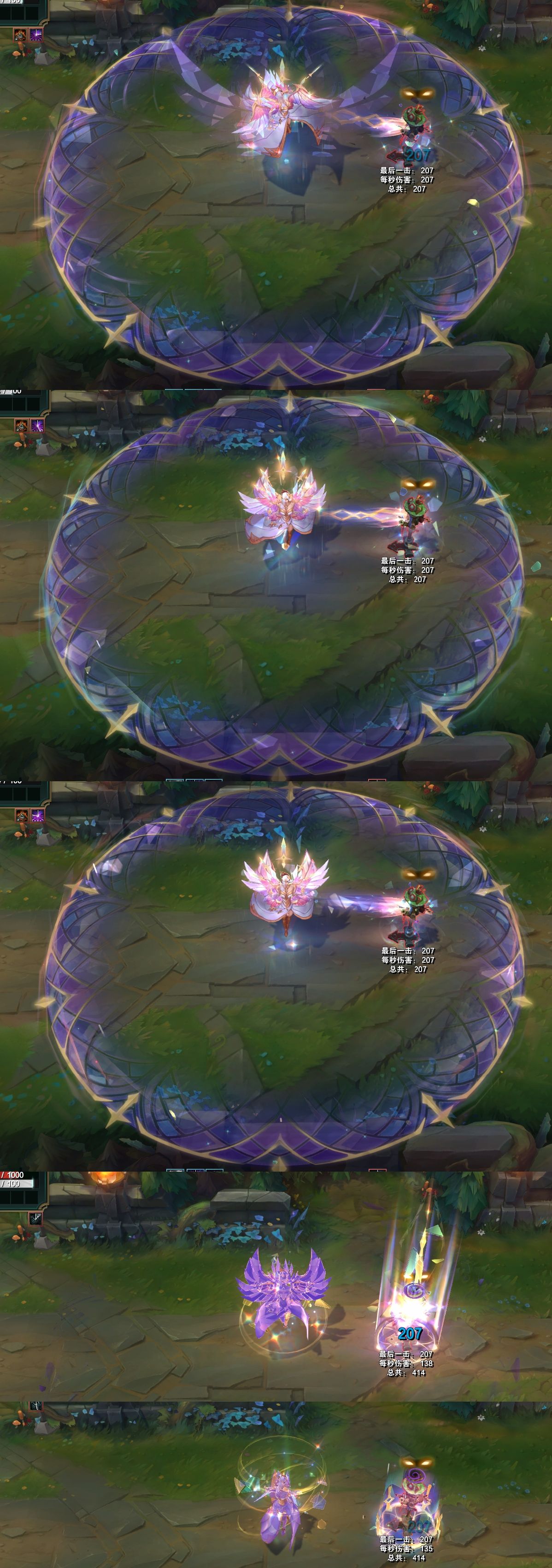 结束时,身体会变成紫色的水晶,周围出现环绕着的光效。