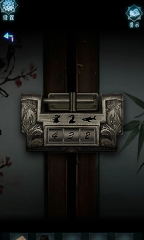 8、时刻调整到子四刻之后,天井池子的水面上全出现落叶,点击落叶可查看,得知“逆时针3圈、顺时针1圈、逆时针2圈”的线索,根据叶子上的开锁线索,先点击3次左箭头,再点击1次右箭头,最后点击2次左箭头.
