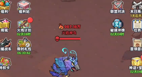 火焰神鸟是游戏中段偏后的关键挑战目标,外形设计取材自传统神话中的青鸾形象,整体建模兼具威严与灵动感。该BOSS基础血量固定为987万,数值设定明确,对队伍综合战力提出较高要求——这也是多数玩家卡关的首要原因。
