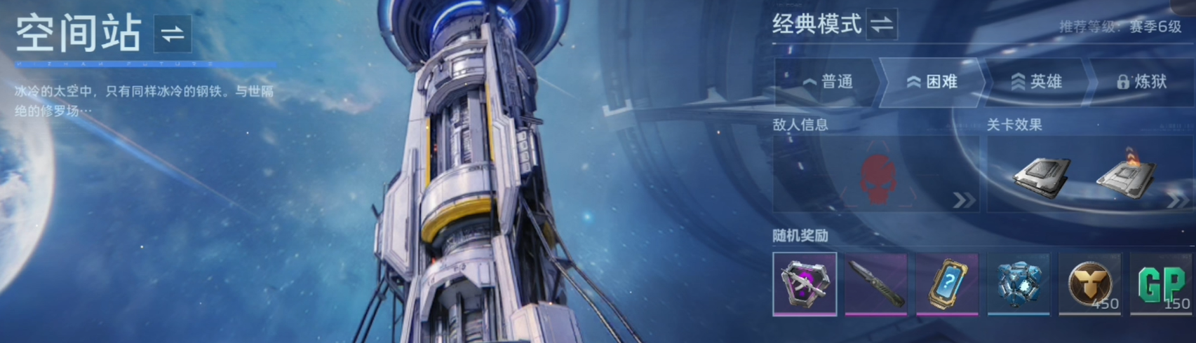 现在游戏开放的塔防地图有空间站和20号星港这两个,每个地图都设置了四种难度供玩家挑战。塔防玩法跟平时的射击对战不一样,更加考验玩家对陷阱位置的规划和布局能力,光靠枪法好是不够的。