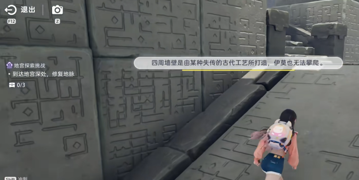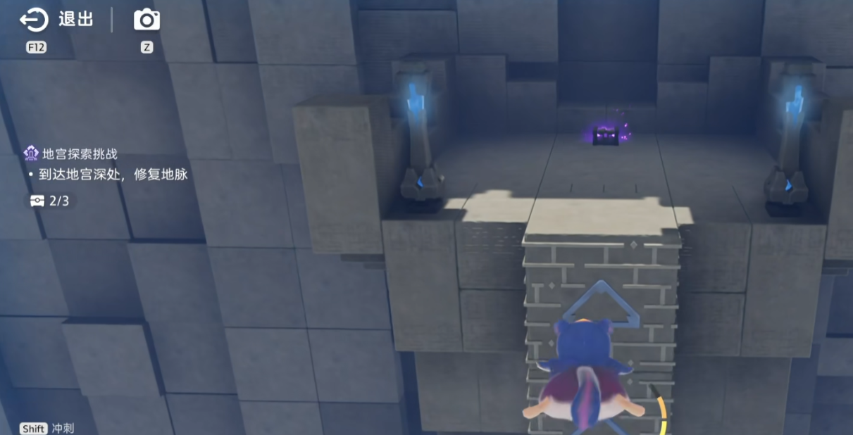 滑翔功能的正式开启地点为地宫——展翼滑翔区域。玩家可在地图界面直接选择传送,快速抵达入口。进入后需向地宫深层推进,目标为修复地脉节点。沿途空间受限,四周为不可攀爬的古老石壁,前期移动依赖角色自主行走。当发现紫色伊莫雕像时,靠近并触发互动,使用联结指令即可激活伊莫协同能力。