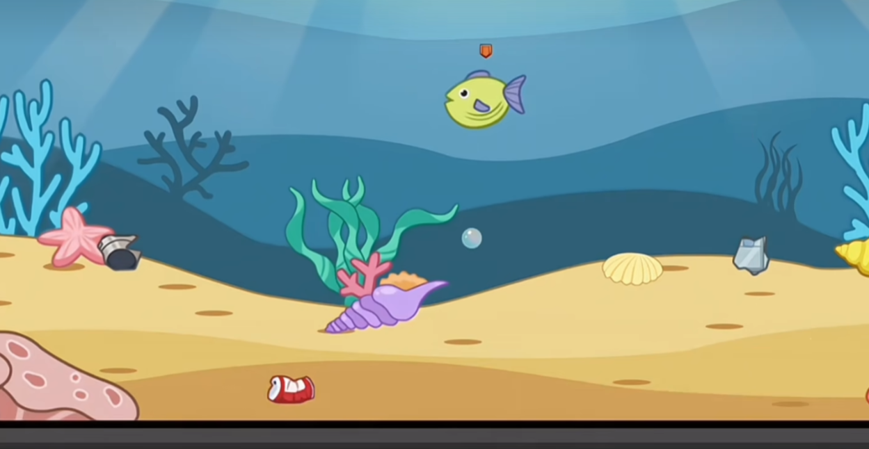 除常规鱼类外,环境中还分布多种特殊元素:例如带有尖刺的河豚,接触后立即导致游戏结束;漂浮的塑料垃圾或油污团块会使画面变暗、视野受限,极大提升遭遇危险的概率;而散落的金币与珍珠则为关键资源,拾取后可加快体型进化进度,助力玩家更快成长为海洋顶端的大型鱼类。