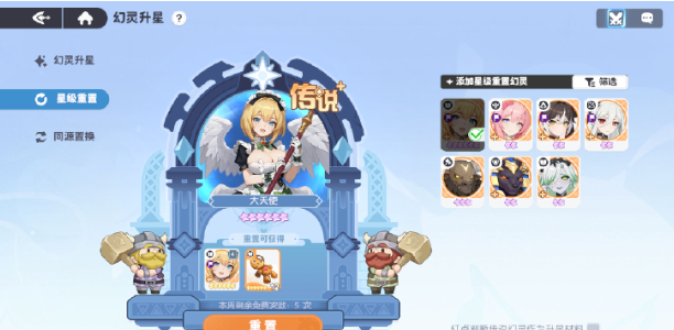 重点来说一下幻灵重置系统,游戏中所有培养的幻灵全部都会支持重置,在重置之后还会全额的返还在升级以及突破过程中所有的材料,包括突破材料、升星碎片还有经验药水,对于新手来说,根本就不需要纠结是追求高星级幻灵。可以先用容易获取的幻灵过度,等抽到强力的角色之后,就可以直接过度重置,就能把所有积累的资源无缝的转移,迅速就能成型主力队伍。需要注意的是,幻灵在重置时无需付费,只需要消耗少量游戏内的通用货币即可。