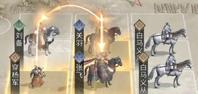 在新手阵容里面,很多玩家前期组合的也是这个经典的桃园三结义阵容,其中用到的张飞他是作为辅助c位的角色使用,另外搭配的就是关羽跟刘备这三个熟悉的武将放在一起的话,他也不用担心其中没有足够的辅助能力,因为其中关羽作为主要输出的话,他有多次攻击的能力之外,张飞也可以带来足够的输出来辅助关羽进行攻击,然后刘备他做核心辅助的话,这里也可以给我方的队伍带来足够的叠加机制,特别是关于他自身拥有的数值,也可以在一段时间之内造成比较高的单体伤害,同时利用这类伤害可以让张飞的伤害范围得到一定的强化,在张飞得到足够强化之后,跟关羽搭配在一起,他们的组合才会更加有力,此时关于大家要注意此时他的追击格子一定要踩中刘备以及张飞,这样才可以实现队伍当中攻击次数的叠加。