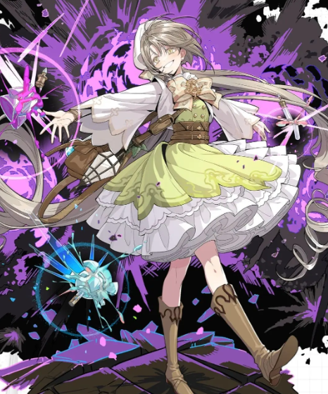 接下来第四个给大家推荐的就是玛洛莉,玛洛莉在当前的简称里面也被称作为药水,她也是当前SSR水平里面一个达到全能效果的角色,因为利用玛洛莉自身的主动技能可以进行药水回收,回收的时候对于这里的药水进行使用的话,是有多种效果可以考虑的,如果被动技能交出药水的话,那么玛洛莉在回收此类药水的时候,会根据药水的能力带来不同的技能加成,所以在进行药水使用的各个场合里面都是有不一样的效果的,特别是针对于我方需要的增益比较多的情况下,能够带来的一个提升能力会有更多重的元素可以用到,而其中药水如果进行爆炸输出的话,范围伤害也没有那么低,但是药水如果是造成的回血能力,是只能给自身带来一定回血的,所以在目前阵容里面,玛洛莉其实塞的进去的各类阵容就很多。
