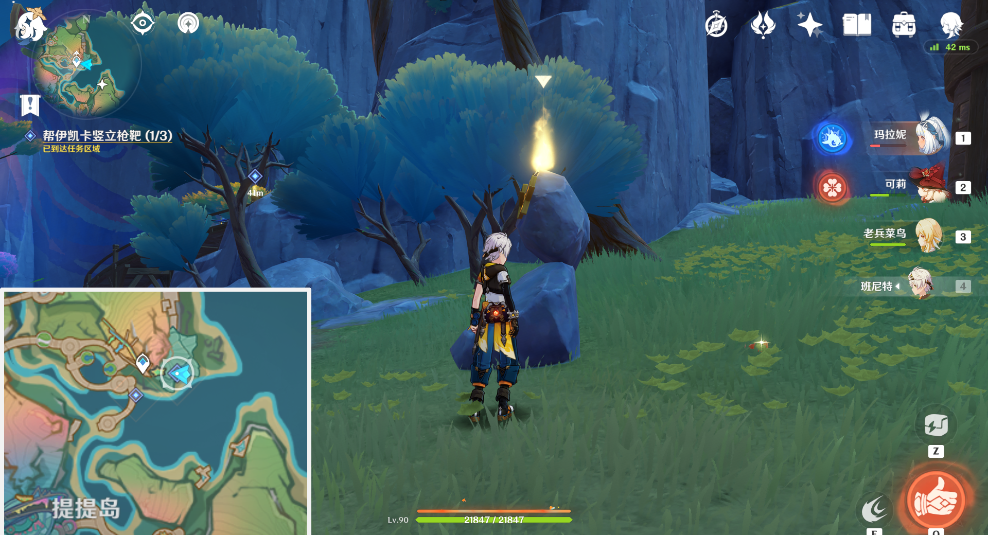 原神提提奇遇任务怎么完成,来到「提提岛」东北方下图位置,就能看见一个光头「伊凯卡」,和光头对话,开启无标识隐藏任务「提提奇遇」,五分钟获得一个珍贵的宝箱与隐藏成就「他们给了我名字」。