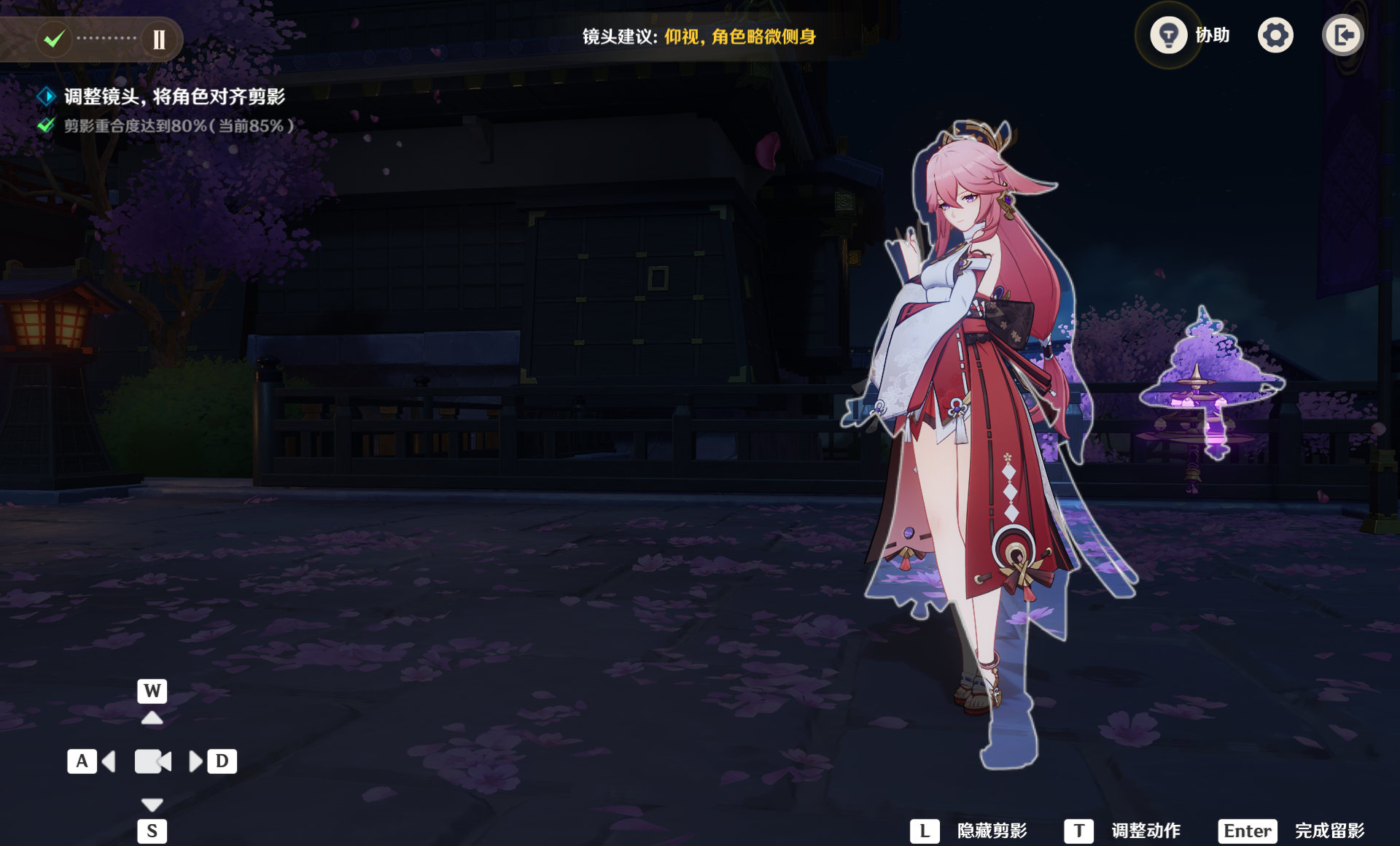 《原神》天守绯影拍照技巧: