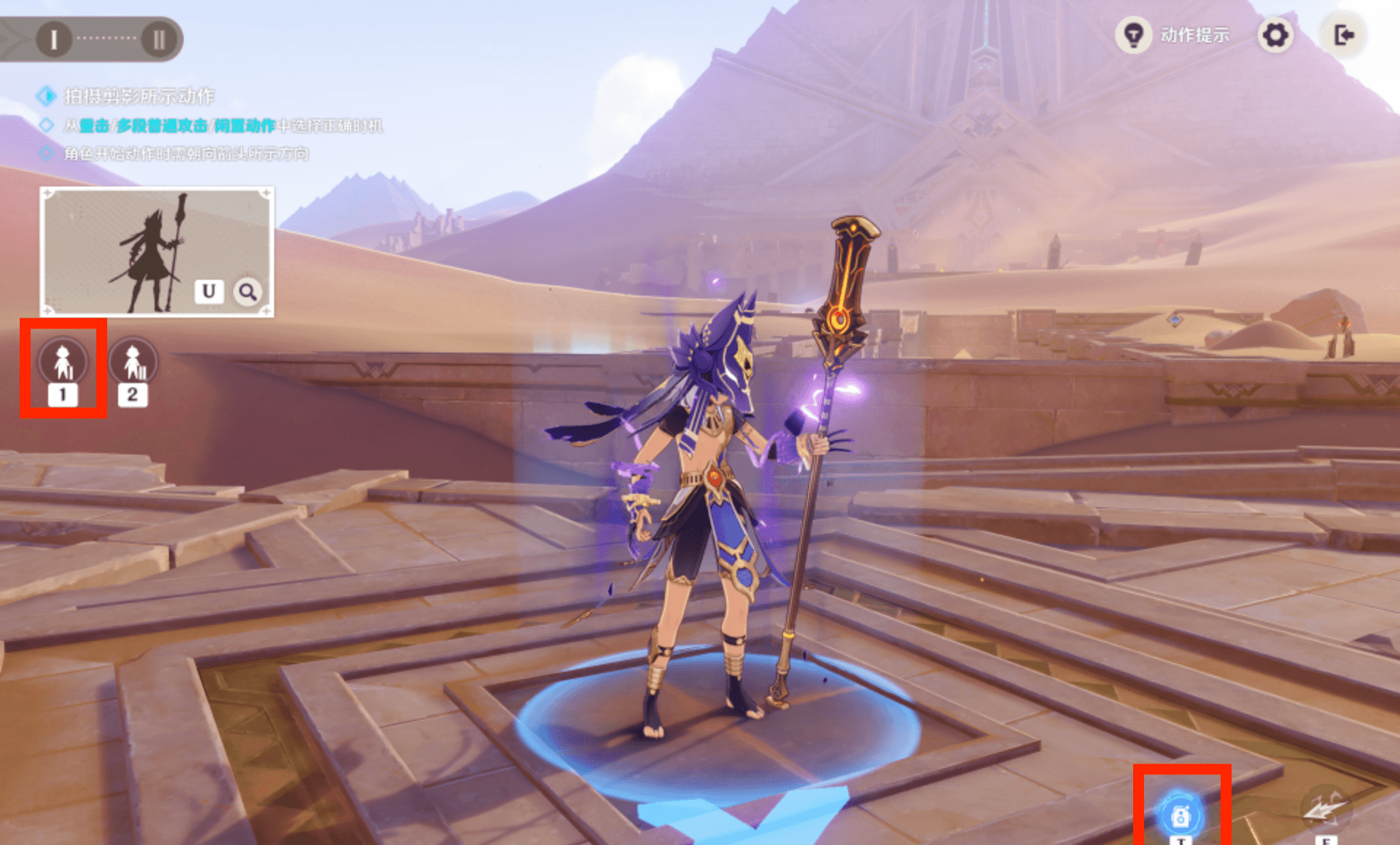 在闲置动作1收尾时拍摄即可
