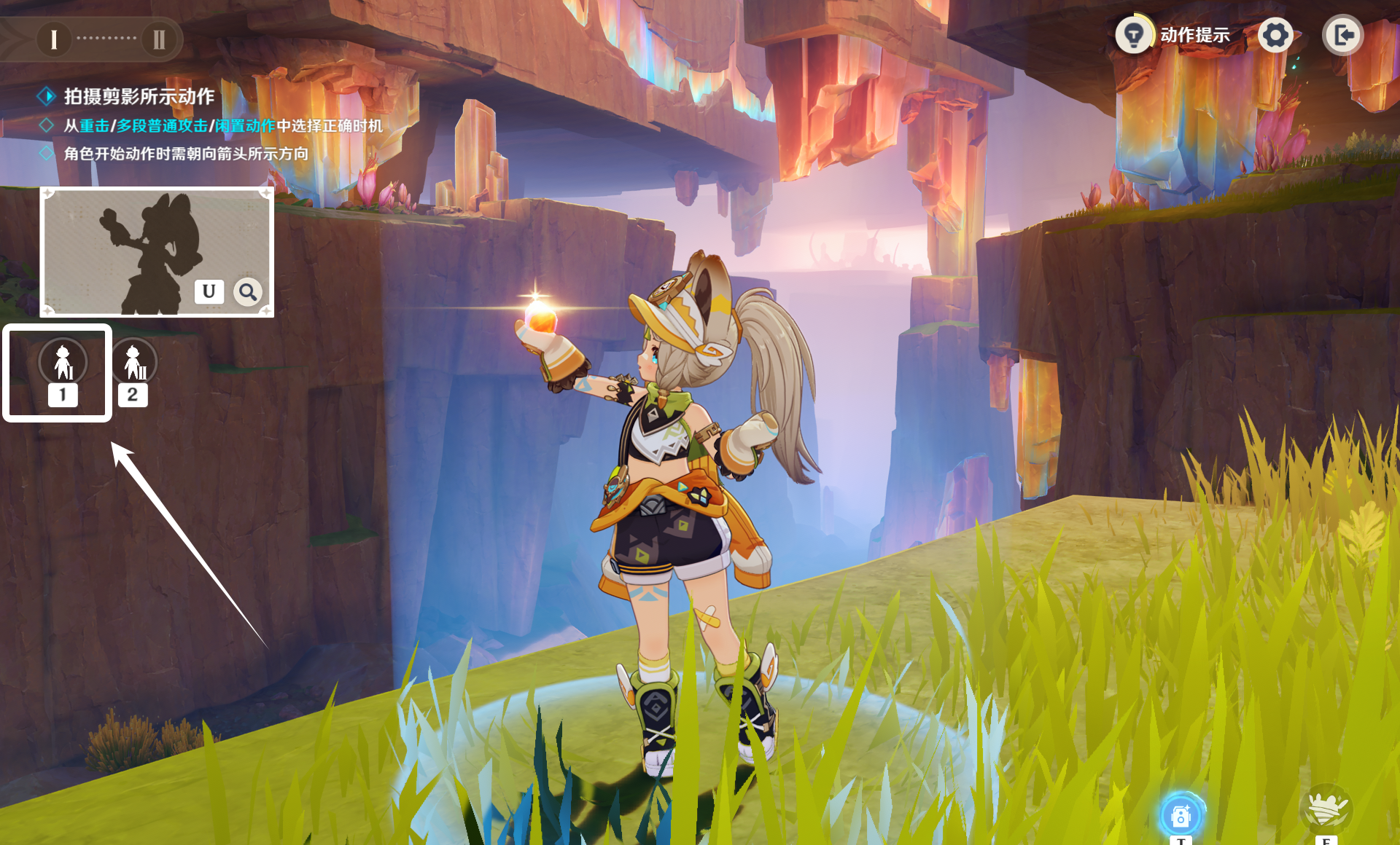 闲置动作1收尾时拍摄即可