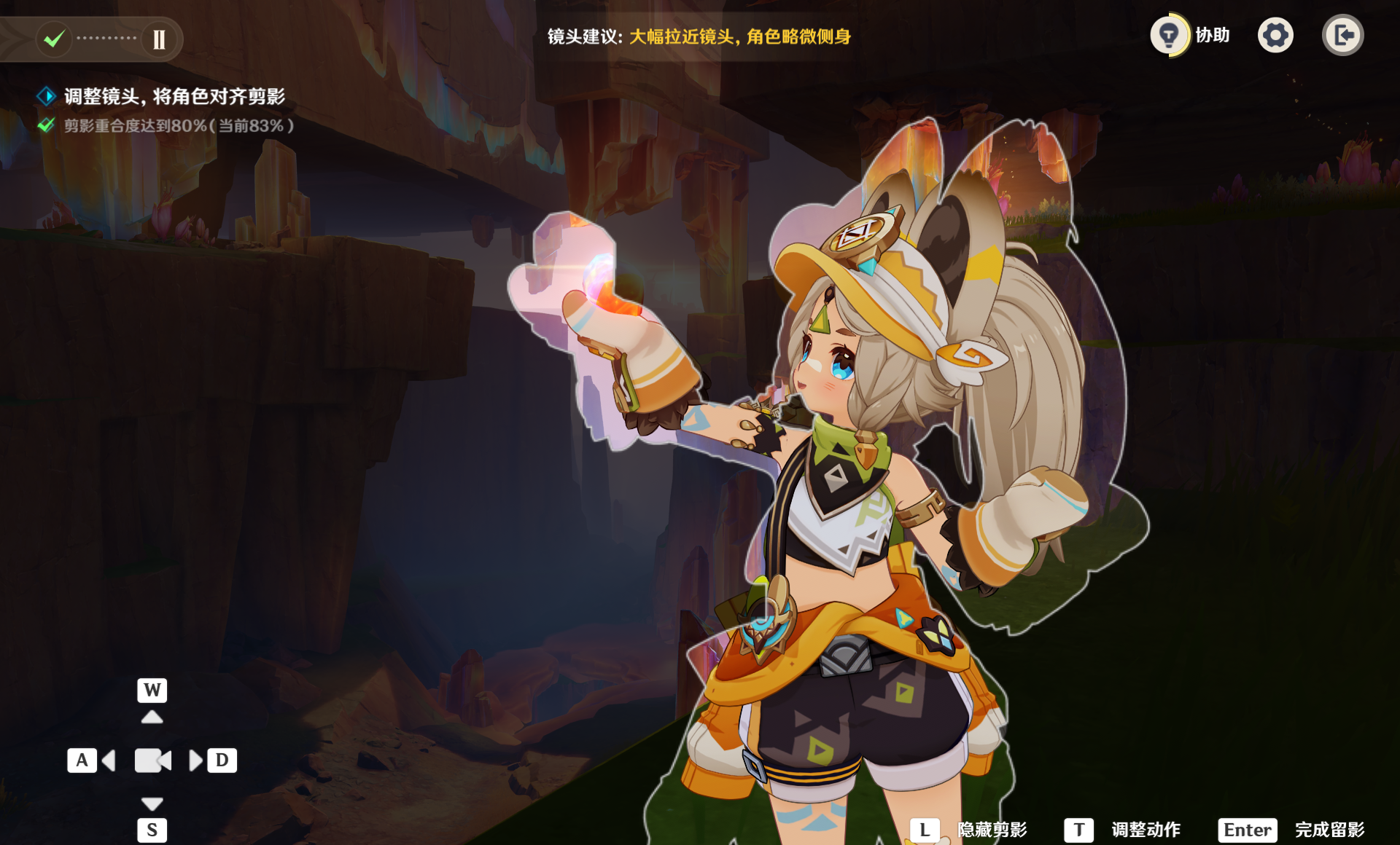 原神原矿新芒卡齐娜怎么拍,下面为大家带来原矿新芒卡齐娜图文版攻略,首先地图上摄影机符号是可以直接传送的,不用从传送点跑过去,其次第二部分对齐剪影部分,如果手动对不好,点击左上角协助按钮,会自动对齐。
