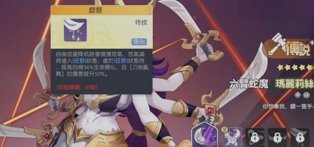 剑魔定位为防御协同型战士。释放主动技能后,可同步提升自身物理与魔法攻击力,并获得基于最大生命值的生命增益效果。其成长曲线平滑稳健,技能效果兼顾输出强化与生存补强,在团队中能有效延缓减员节奏,为后排提供更充裕的技能冷却与战术调整窗口,是提升整体阵容韧性的优选配置。