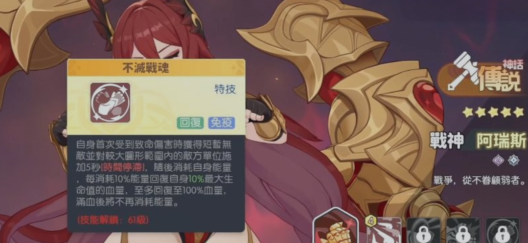 战神阿瑞斯则侧重极限生存与关键帧保护。其生命成长属性突出,核心被动“不灭战魂”可在能量充足时激活无敌状态,精准规避Boss阶段性的高额单体爆发技能。这一特性使其成为高难度Boss战中不可或缺的“保命锚点”,既能稳定吸收关键伤害,又能通过无敌窗口为队友创造反打或技能重置时机,显著提升整场战斗的节奏掌控力。