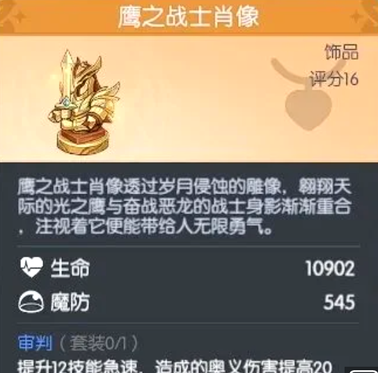 该饰品是构建“急速流”体系的核心组件。佩戴后提供10902点生命值与545点魔法抗性,显著强化生存容错;同时赋予12点技能急速,加快奥义技循环节奏,并额外提升20%奥义伤害。适用于依赖高频释放大招、追求爆发衔接效率的法师或辅助型角色。