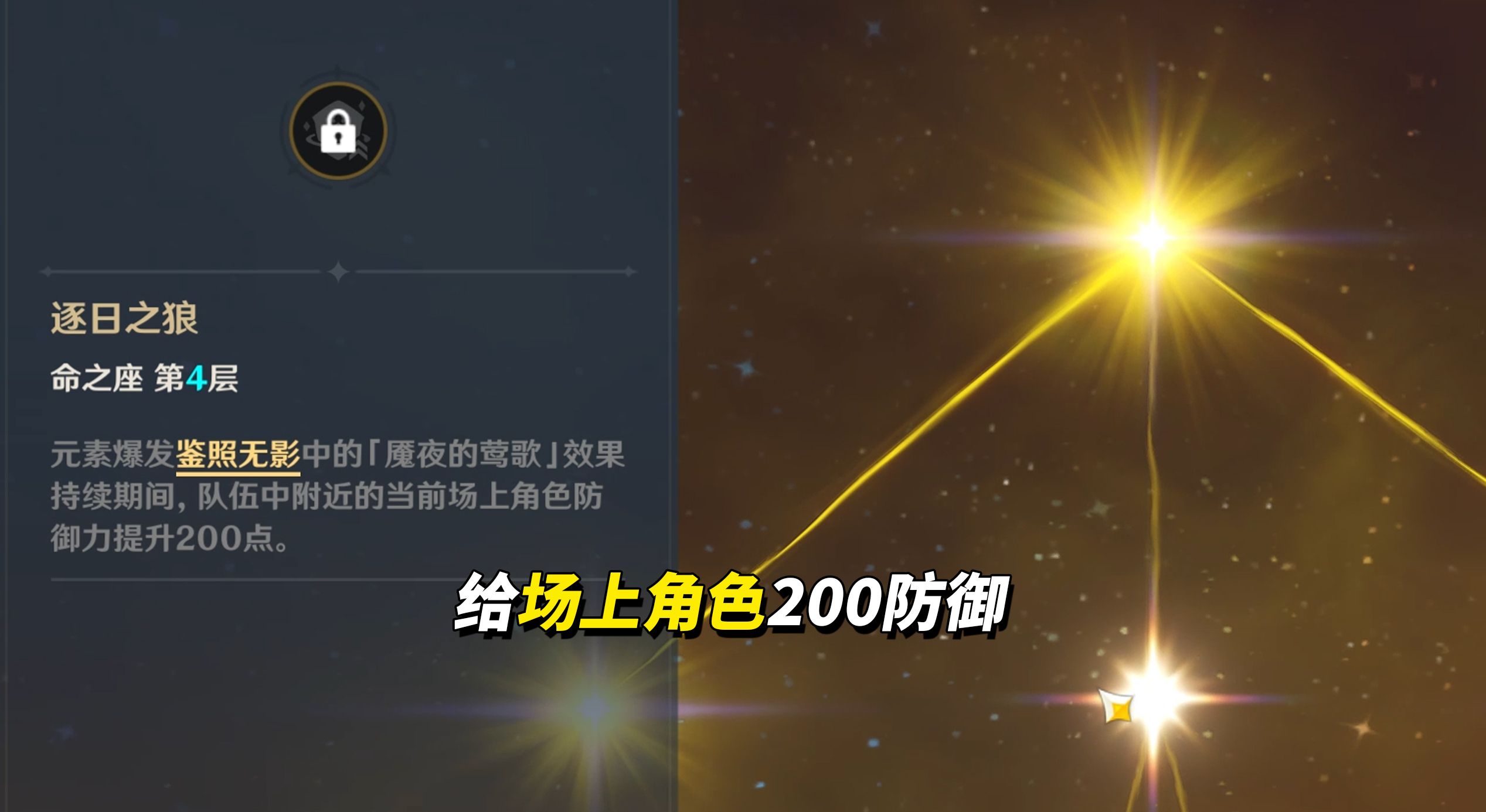 4命,元素爆发增益持续期间,场上角色提升200防御。