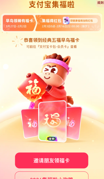 提前参与小任务,有机会获得万能福、沾福卡等稀有卡。