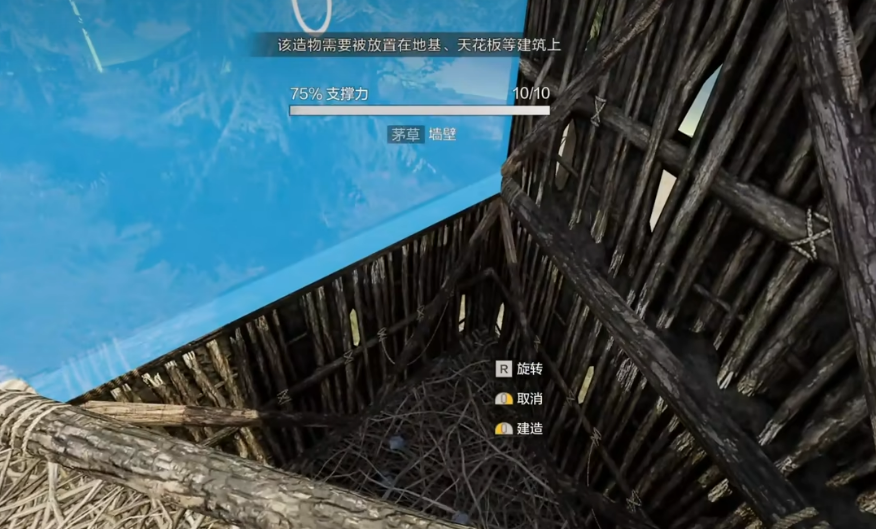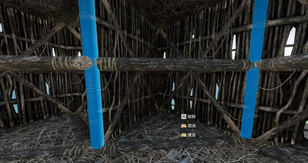 最开始的时候,咱们先建一个1x2的小房子用来开荒。进去之后在里面搭一个三角板,这样空间就会大一些,能多放几个箱子。把领地柜放好,一个简单的开荒房就完成了。等手里稍微有点材料了,就可以开始往外扩了。