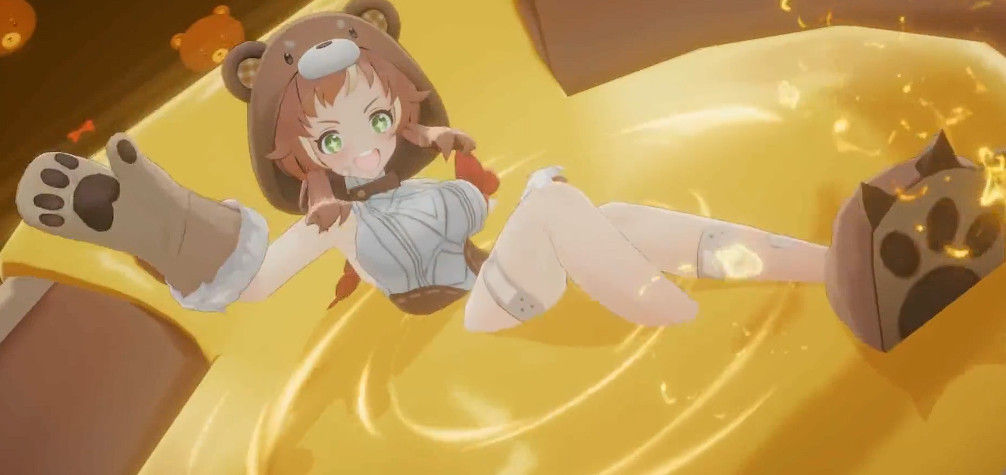另外朵菈在被动技能效果上面有一个熊钢不坏的技能效果,使用的话会对于群体的敌人进行输出,此时只要是在朵菈3.5m范围之内的队友会带来的增益效果也体现在防御以及暴击效果上面,防御的增加达到80%,而暴击的增加达到40%,另外再有这个熊钢不坏的增益状态时,朵菈一般在造成攻击的时候会有100%的额外伤害,特别是在有一定速度加成的同时,20%的额外速度加成也会让她在持续8秒的时间之内灵活度更高一些,而朵菈的大招叫做熊熊烙印,通过这个技能可以直接将朵菈的身形达到巨大化的能力,目前对最接近她的一名敌人可以造成周围3m范围之内的攻击,对敌人来说造成的这个群体攻击每一个敌人都可以达到380%的伤害,并且让目标眩晕眩晕的时间当中,而对成为主要目标的一位敌人来说,这里造成的攻击力上面还有190%的额外伤害数值可以叠加,同样无视掉对面所有的防御数值的时候,造成的这个额外伤害就非常的管用,可以说是非常高的真实类型伤害效果,通过这个大招,朵菈可以一次性给敌人带来非常高的打击能力。