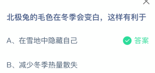 以上就是北极兔的毛色在冬季会变白,这样有利于?支付宝蚂蚁庄园2026年2月3日答案最新,更多相关攻略,请关注3dm手游网更新!