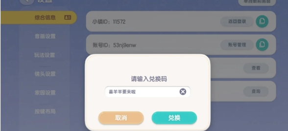 2、在设置页面的下方找到兑换码输入框