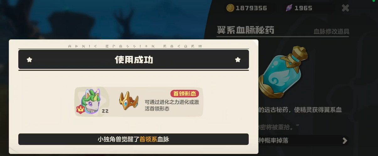 当白金独角兽同时拥有了进化之力和首领血脉之后,就可以进行进化操作了。不过这里有个细节要注意,在准备让它上场战斗之前,要先检查一下精灵背包里面的强化术设置。原本可能装备了其他的强化术,这时候需要把它替换成进化之力。只有把强化术换成进化之力,在战斗中才能将进化的机制触发,再配合上首领血脉的效果,白金独角兽就可以完成向彩虹独角兽的转变了。