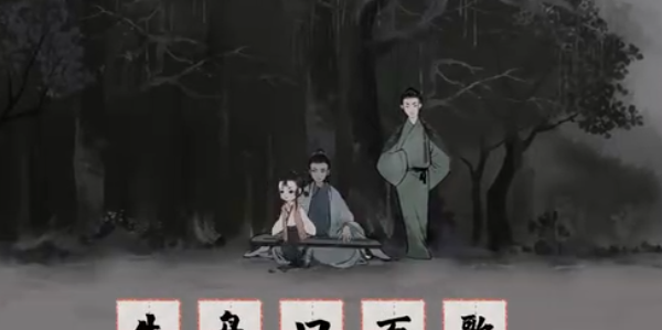 《栖云异梦:梦蝶》第四关“闻琴”中,玩家需通过拆解文字与环境互动。首先获取【星】(天空)与【鸮】(树上大鸟)。将【星】拆为【日】置于天空,转为白昼使鸟群飞散。与绿衣歌者对话得【歌】,拆解【歌】得【欠】,【鸮】得【号】再拆为【口】。组合【口】与【欠】为【吹】,用以驱散雾气。最后从河面获取【筏】,拆分为【伐】,砍断挡路树木即可前进。