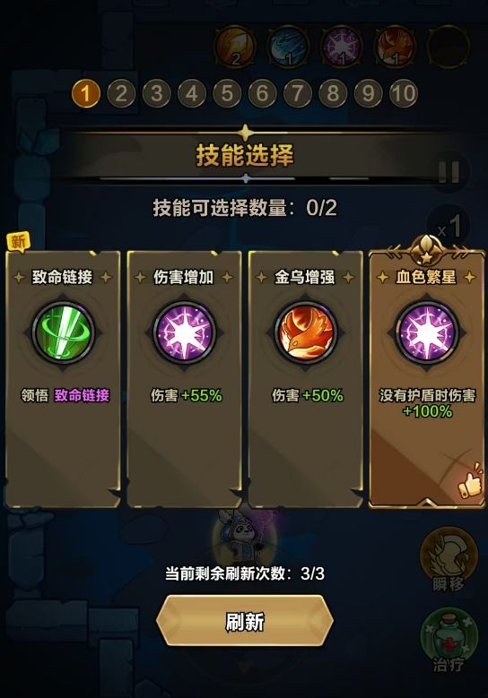游戏会在本玩法里放置一名boss,且开局就能玩家选择10轮的装备词条,让玩家能在初始阶段就完成技能组的组建。组建时,玩家选择自己最常使用的技能组即可,若所选的技能词条不是特别满意,还可用退出重进的方法再次选择,不会消耗本次的挑战次数。此外,初始阶段的技能词条是玩家在本玩法里唯一能进行选择的机会,挑战中途不会有任何可选技能词条的事件触发,所以各位最好谨慎挑选。