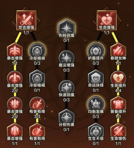 在天赋书配置中,建议按以下优先级推进:第一阶段集中点亮“普攻伤害提升”“暴击率强化”“暴击伤害增幅”;第二阶段解锁“攻速加成”“元素穿透”;第三阶段视副本压力补充“吸血转化”“护盾强度”等保命词条。该路径可确保前期快速成型,中期持续增益,后期抗压能力同步提升。
