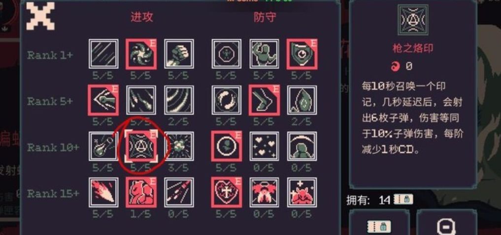 接下来就是符文跟武器的选择搭配,建议玩家在选择符文的时候,只留枪之烙印,剩下的玩家直接把点燃,冰冻这些子弹特效尽可能的提高,而对于枪支烙印的效果其实比较适配。不开枪的玩法,通常情况下,每10秒钟就能够召唤一个印记,一旦延迟之后,会自动射出6枚子弹。当然它的等级越高,所形成的冷却也就会越短。