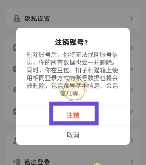 3、在弹出的窗口中,点击【注销】,即可注销账号。