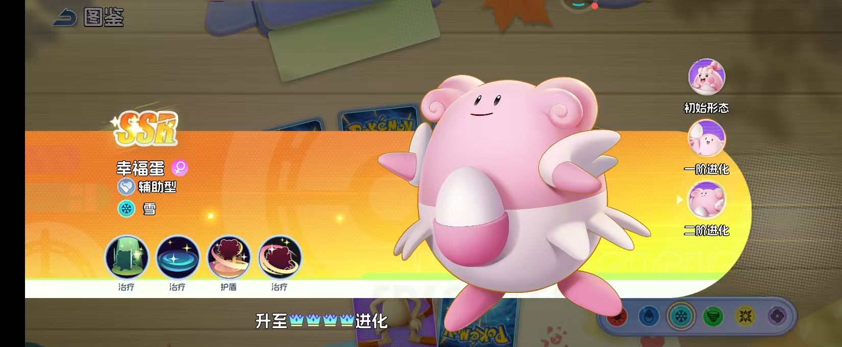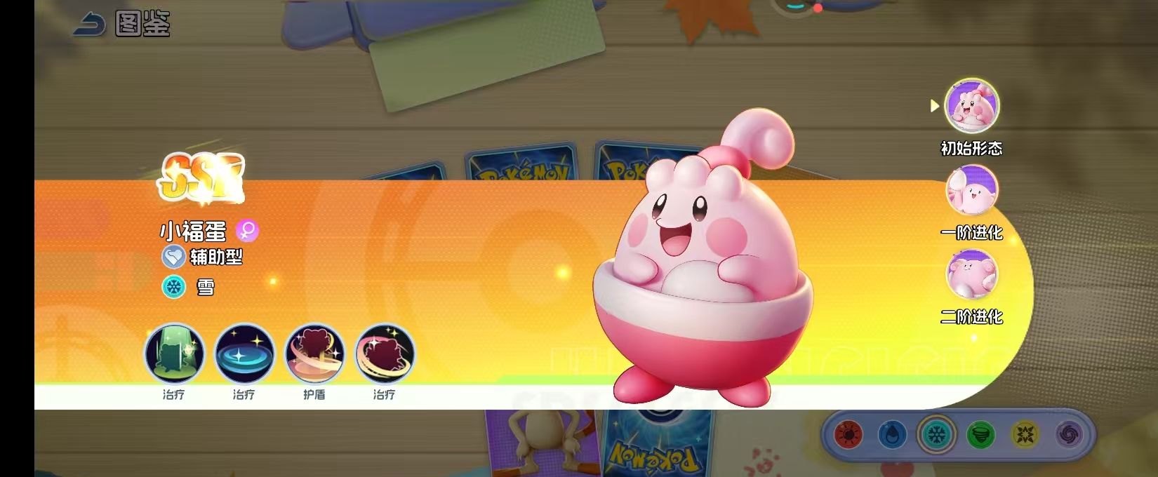 在进阶的道路上,小福蛋的潜力也是不可身侧的,开始只不过是小福蛋,在进阶之后就变成吉利蛋,最后就变成幸福蛋。而每一次的进阶技能都会有所提升,例如生蛋的技能会从一级变成5级,恢复效果也会从500%的攻击力迅速的提升到800%。同时进阶解锁的护盾技能可以给团队带来关键的减伤屏障,能进一步的提升团队保护能力。在粉色的外壳下,藏着的其实就是一种纯粹的善意,小福蛋总是会第一时间出现,可以去保护每一个队友。所以这才是一个值得大家选择的宝可梦。