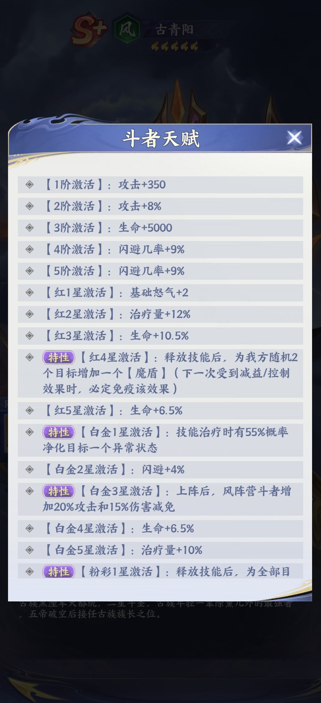 古青阳的天赋系统,主打的就是团队的辅助,以及逐步强化生存。目前对于大部分玩家来说。一旦处于这样的情况下,之后能够拥有不错的基础条件,而当他的星阶逐步得到升级之后,其实他自身的实力也就会加强,当然在整个队伍当中也能够起到关键性的作用。