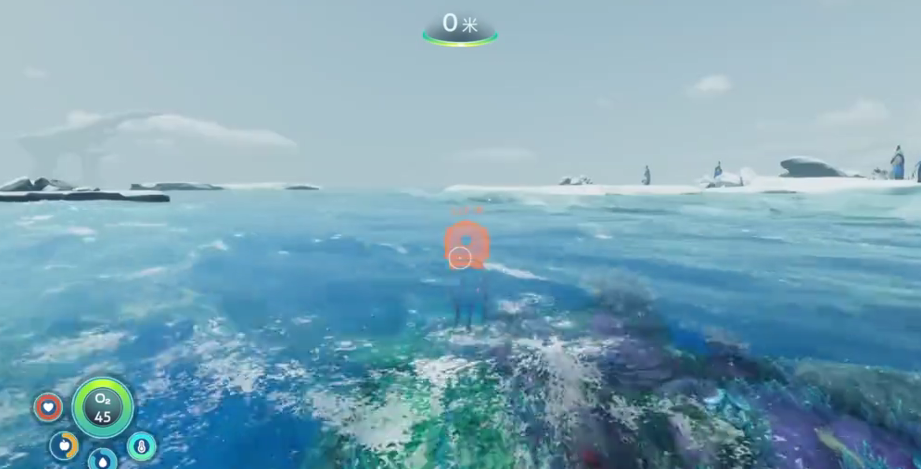 随后玩家们就可以直接前往水内开始探险了,在水面上会有极寒天气的影响,到了水面之下,玩家们就完全不用担心了,水下的物资还非常丰富,例如铅块一类的矿物,玩家们都可以获取,由于开局的道具比较少,所以玩家们开始的大型物资都是没有办法获取的,但是小型物资还是需要关注一下,当玩家们在水下之后,也要注意一点,那就是氧气,水下缺氧时会有提醒,此时玩家们就需要迅速上浮获取氧气。这一阶段直接前往吊舱就可以将氧气补满了,吊舱属于玩家们的基地,这里还有一个工作台,可以帮忙玩家们制作其他物品。