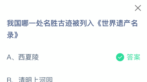 我国哪一处名胜古迹被列入《世界遗产名录》?支付宝小鸡课堂开课啦!每天花一分钟答题赚饲料,喂喂小鸡就能贡献爱心啦!轻松又意义十足!2026年2月26日蚂蚁庄园的小鸡课堂题目正确答案是【西夏陵】,我国【西夏陵】名胜古迹被列入世界遗产名录。