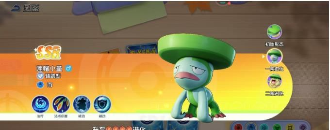 宠物集结乐天河童怎么进阶?在宝可梦的世界中,玩家总是可以看到一些精灵在辅助的位置上就可以绽放光芒。宠物集结乐天河童这就是其中的一个,伴随着逐渐的境界实力也会马上改变,原本是一个青涩的辅助新手。后期就会在团队中成为一个无法忽视的辅助大师。那今天就为大家来分享一下到底是如何进阶,在这个过程中有什么样的特点?