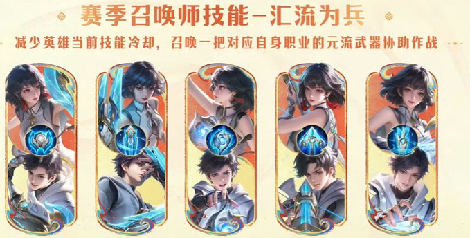 王者将在s43赛季上线新的召唤师技能汇流为兵,新赛季专属召唤师技能太顶了,根据携带职业自动解锁对应元流效果,坦克携带会获得元坦大招,团控拉满;刺客携带解锁元刺斩杀效果,残血收割稳了;法师携带获得元法大招,爆发直接拉满;射手携带触发元射2技能,可击退英雄保平安;辅助携带解锁元辅大招,减CD还能抬血,全职业都能适配!