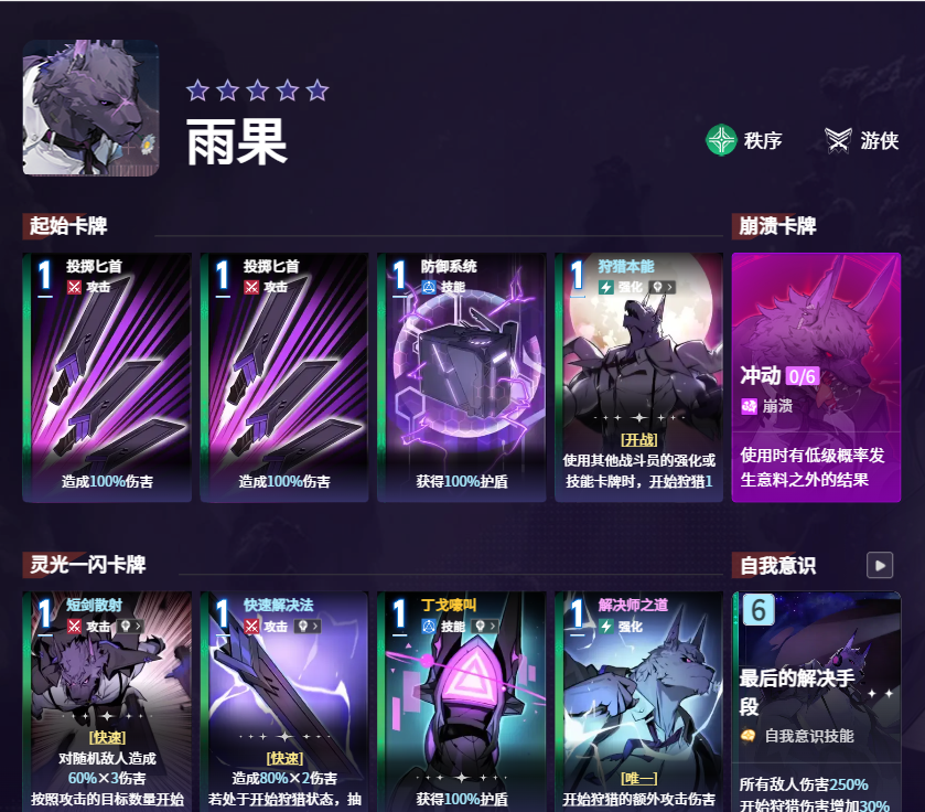 游戏中能够进行额外攻击的主战员有蕾欧娜、百丽儿、雨果等。其中雨果是一个以额外伤害为主要输出手段的四星角色,他拥有特殊的“开始狩猎”buff,可以使他在使用锁定攻击卡牌时对目标造成额外50%的攻击。其“开始狩猎”的层数越高,对敌方能够造成的额外攻击伤害量也就越高。该buff以30%的倍率进行叠加,最大可以打出150%的高额伤害。此外,他的灵光一闪卡牌技能“短剑散射”可以对敌方造成快速且多段的伤害打击,配合上强化卡牌“解决师之道”的话,能够使得他对敌人所造成的额外攻击伤害大幅提升,是一个很好用的攻坚手。此外,他的起始卡牌“狩猎本能”能够让他在队友发起攻击时同时出手,造成一次100%攻击力的额外伤害,所以当他配合拥有高频率攻击特点的特蕾莎时,能够在战斗中打出可观的伤害,泛用性极高。