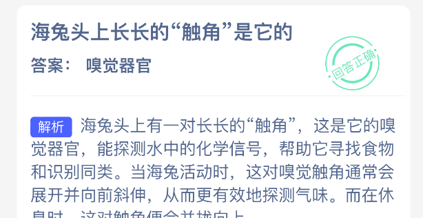 以上就是海兔头上长长的“触角”是它的?神奇海洋今天答案最新2026年2月28日分享,更多相关攻略内容,请点击关注更新!