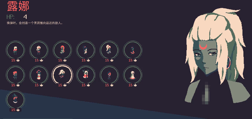 接下来为大家推荐的就是露娜,露娜这个角色上场的话,因为她自身就有一定的聚怪效果,放在这里的话,攻击可以覆盖到这里的聚怪范围那么大,攻击的效果就会慢慢的提升起来,因为前期刚进入地图的时候,聚怪的范围不会很大,所以只是配合火箭筒之类的武器是可以快速的清理周围敌人的,如果是玩无尽的话,露娜慢慢的走起来,其实后期范围越大之后武器的强度只要跟得上,这个角色也是非常强的。
