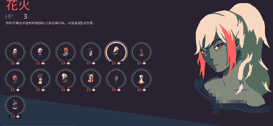 第三个为大家推荐的就是花火,花火这个角色输出的时候有一个特点,它释放出去的子弹会有一半的概率可以造成落雷伤害,这里落雷伤害基础带来的伤害数值也达到了5点,而且如果在游戏当中大家使用双枪的话,一般都是花火的能力会更符合一些他,也是新手时期很多玩家会比较喜欢上手的一类角色,操作起来比较简单,因为花火的生存能力确实是比其他的角色要强一些,除非大家手气比较背,否则前期用花火过boss的话还是比较简单的,特别是一些常规的地图当中,花火的清理长期能力还是非常强的。