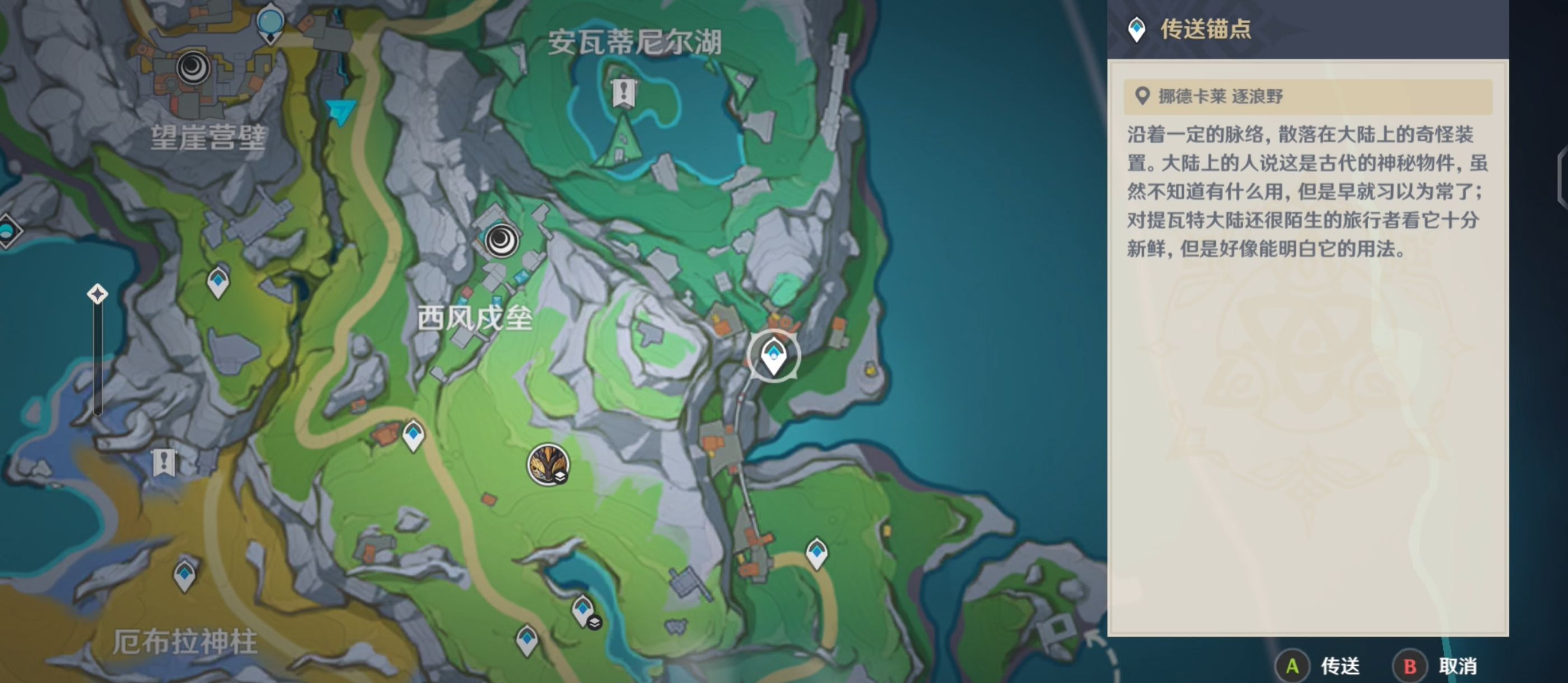 打开地图,来到[安瓦蒂尼尔湖]右下方的传送锚点,并前往任务标点处;