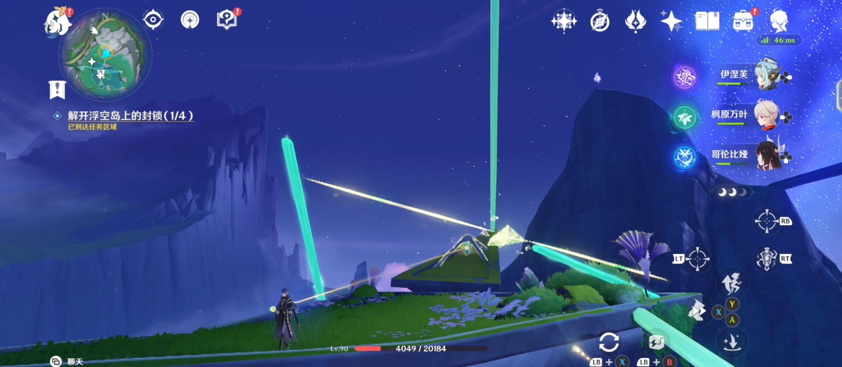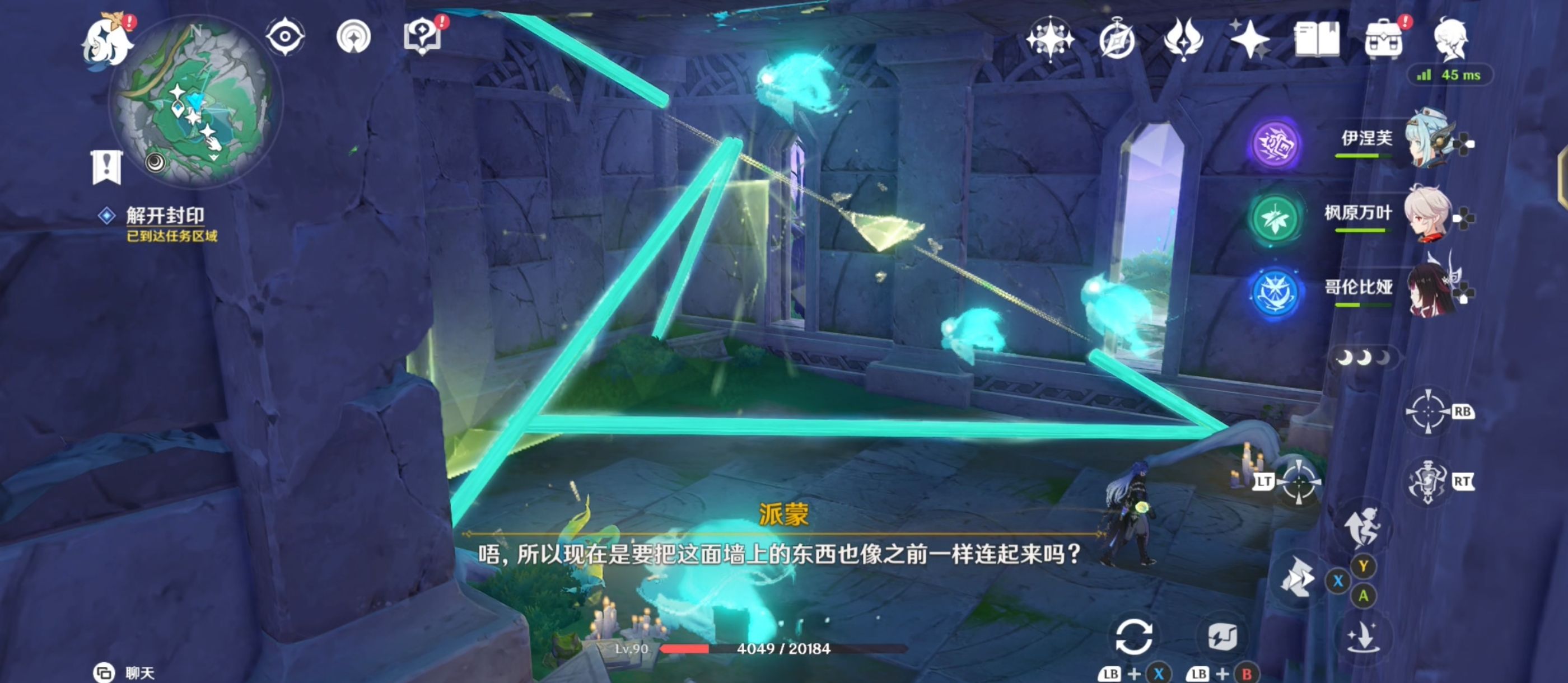 跟随仙灵,利用附近的[璇珑花]调整棱镜与管道之间的连接,完成后出现精致宝箱并利用月灵轨道前往下一个任务区域;