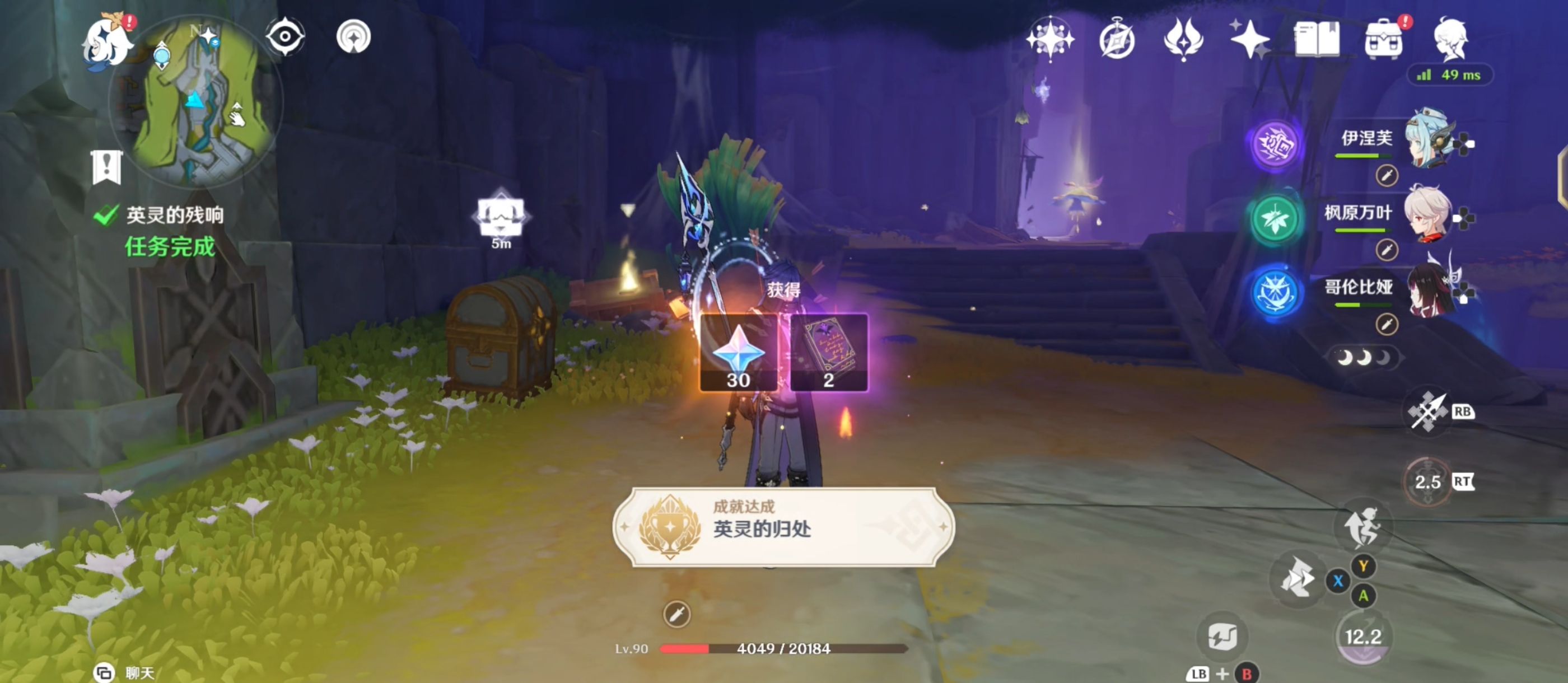 将路径上出现的所有敌人击败后任务完成,出现华丽宝箱并获得成就-[英灵的归处]。