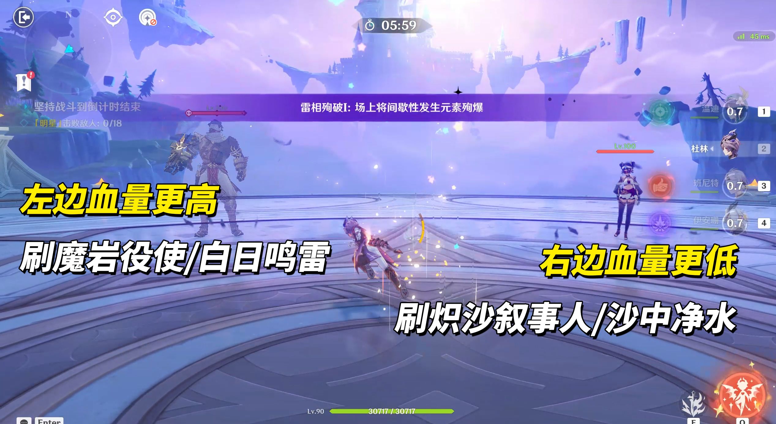第3幕翠翎恐蕈,配队选择持续挂雷的角色,触发它的活化状态,使BOSS更早进入力竭状态(全抗降低25%),更好输出。若它活化技能为冲刺,会冲出去再冲回来,追不上等待即可,时间紧张则建议重开刷出另外2种原地技能。