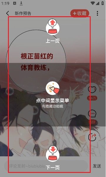 8、调出菜单后,可实现上下话的切换操作,能向作者打赏,可开启自动播放模式,也能切换至夜间观看模式,同时还支持发送弹幕互动。