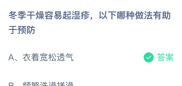 以上就是冬季干燥容易起湿疹,以下哪种做法有助于预防?支付宝蚂蚁庄园2026年3月4日答案最新,更多相关攻略,请关注3dm手游网更新!