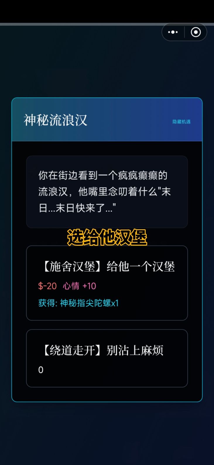 遇见乞丐点施舍 会给一个指尖陀螺,去商店卖五十万